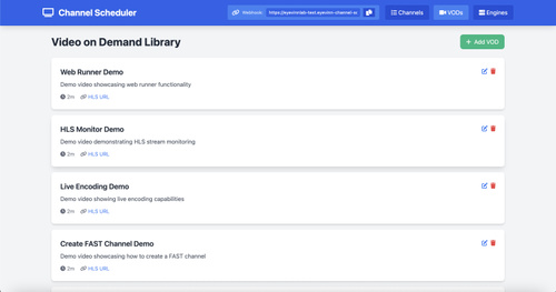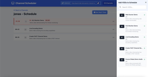 Streamline your video content scheduling with Channel Scheduler! Experience a professional broadcast-style interface to create and manage linear TV channel schedules in real-time. Ideal for seamless online broadcast management!